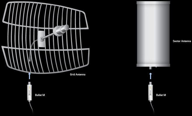 Bullet M系列產(chǎn)品能夠跟任何天線搭配使用,實(shí)際TCP/IP速率達(dá)到100Mbps以上。性價(jià)比最高的室外無線產(chǎn)品。