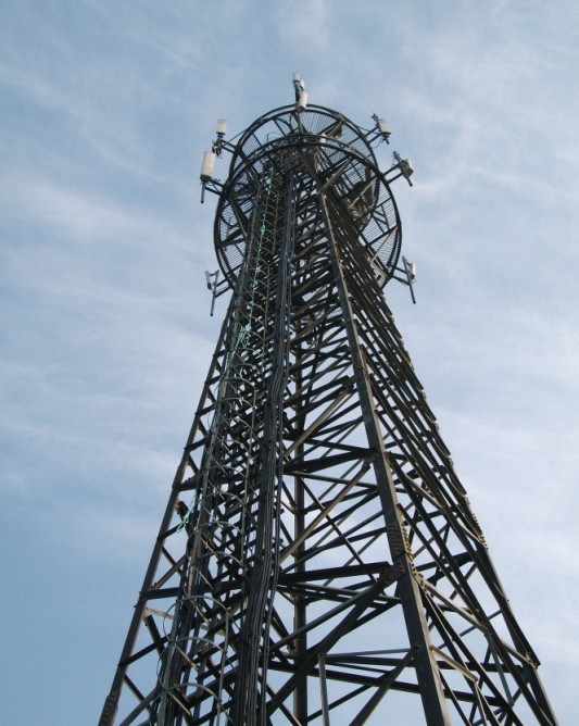 如圖所示營口市電信基站在50米高空施工需要覆蓋的蓋州市剛安裝好的扇區(qū)天線營口市電信機房