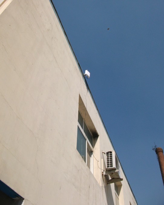 甲方要求:沈陽銘漢機電有限公司因擴建新辦公樓,車間鋪設(shè)光纖難以實現(xiàn),所以考慮到無線傳輸,要求將現(xiàn)有的網(wǎng)絡(luò)(A點)延伸至新辦公樓(B點,C點)以下圖所示。 乙方實現(xiàn):A點作為接入點,B點C點作為客戶端,以點對多點的模式組建無線局域網(wǎng),2.4GHZ頻段難以實現(xiàn)長期穩(wěn)定工作,因此我們采取5GHZ頻段的信號傳輸。