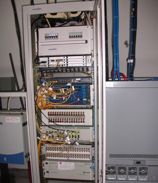 如圖所示盤錦市電信機(jī)房安裝過程安裝完畢此基站為移動(dòng)電信合用